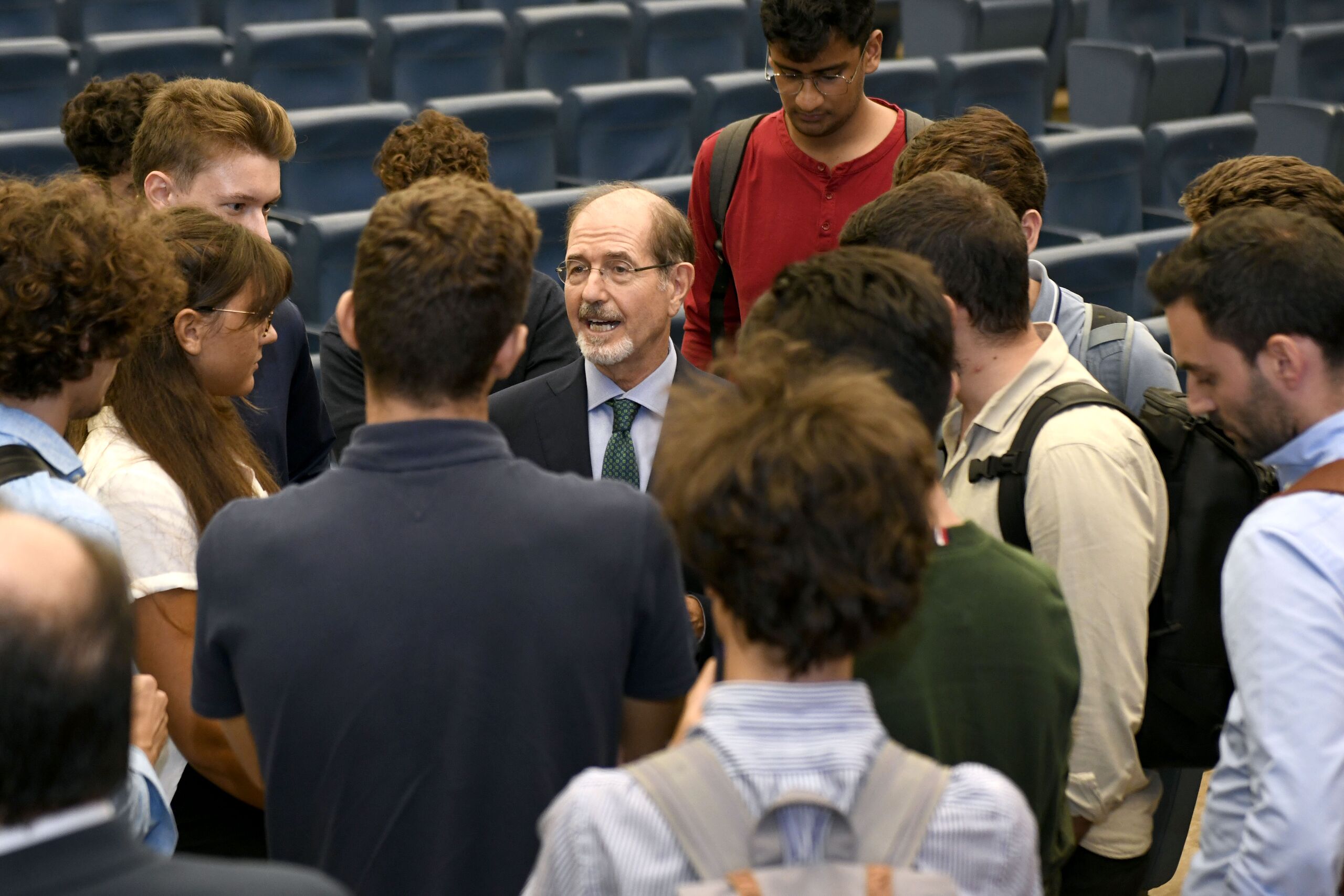 Prof. S. Micali with the Bocconi students during the coffee break.